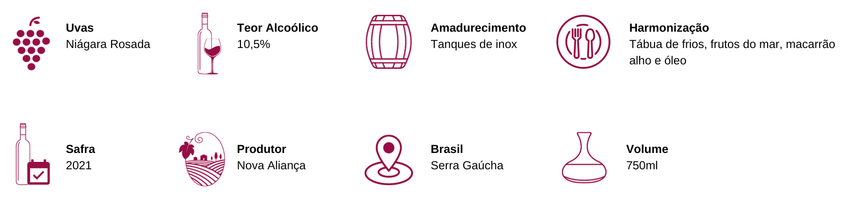 Elaborado com a variedade Niágara Rosada, que tem um perfil frutado e delicado, têm as uvas colhidas de